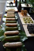 黒・白・グリーンを今回の基調色とし、和を意識したフレンチ・パティスリーが次々とテーブルに並んでゆきました。